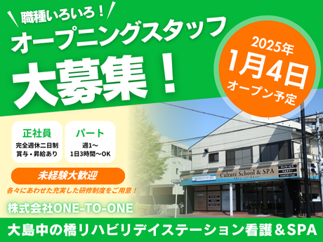 【作業療法士/リハビリスタッフ】\2025年1月にオープンしたデイサービス/月~土勤務OK!週1日~!レクが豊富な店舗